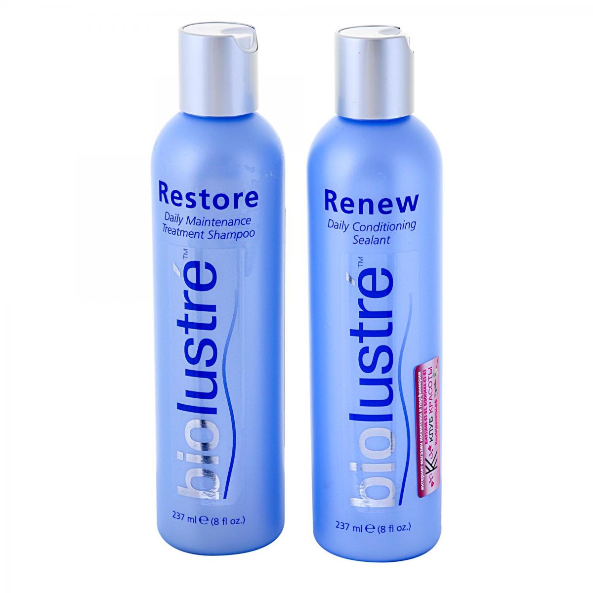 Saputojiet uz matiem šampūnu Biolustre RESTORE Maintenance Treatment Shampoo.