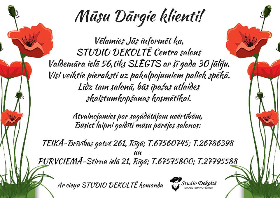 Skaistumkopšanas salons "Studio Dekoltē" Centrā